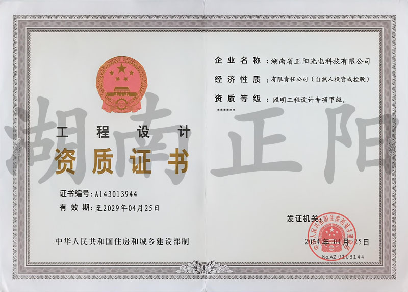 • 照明工程設(shè)計(jì)專項(xiàng)甲級資質(zhì)